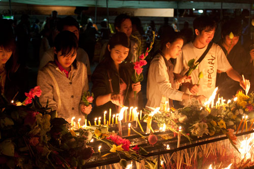 That’s good advice no matter what your religion maybe. Everyone is invited to join in at a Thai temple (wat) on Makha Bucha Day in walking with the lay people and monks, holding lighted candles, incense and flowers and circling the Bhot to celebrate this holy Buddhist day in Thailand. Thai Buddhists gather at the temple at sunset to wian tian, i.e. circumambulate the Bhot, which is the main religious structure in the temple complex where monks are ordained. This is a way of showing respect to what is called the “triple gems” of Buddhism: the Buddha, his teachings and doctrines (the Dhamma) and the monkhood (the Sangha) which he founded.