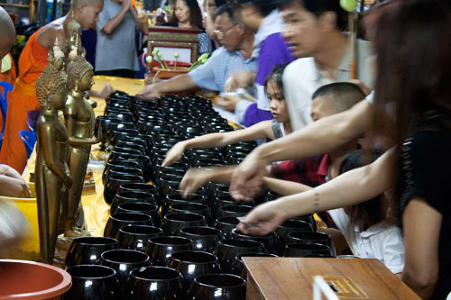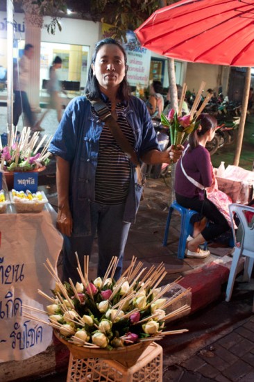 It is a beautiful night with the full moon and there are many vendors selling both the necessary items for offering (candles, incense and lotus flowers), a myriad of street food and an assortment of other items from clothes to flashing electronic toys for children. If you are lucky enough to be visiting Thailand during this time of year, we recommend you visit the local Buddhist temple to observe and partake if you wish.