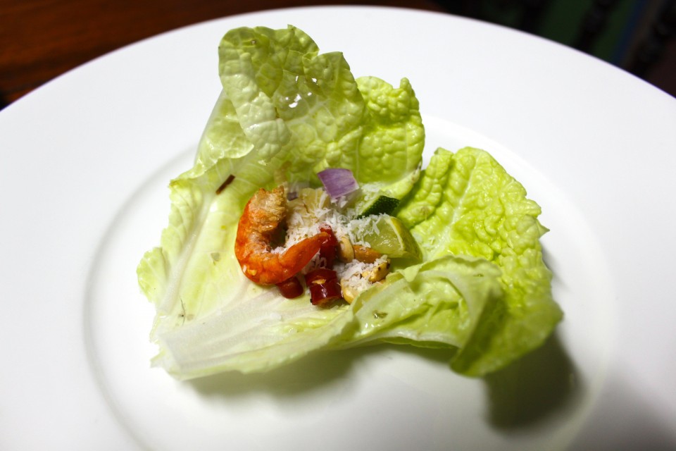 Your guests will customize their Miang Kam by wrapping the ingredients in a lettuce leaf, pouring a little sauce over the top, then placing the entire leaf-wrapped package in their mouth. It’s a beautiful presentation, and everyone stays busy assembling their own Miang Kam.