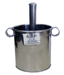 Dimensions: width 5 inches, height 5.5 inches; handle length 8 1/4 inches. Made from stainless steel. Product of Thailand.